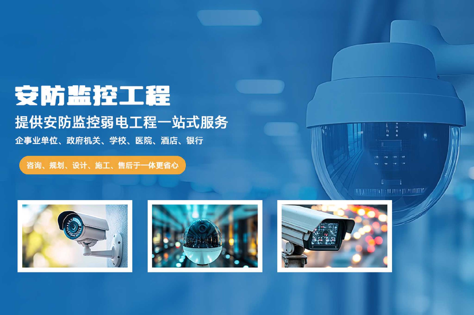 安防監(jiān)控智能化服務商,專注安防監(jiān)控整體解決方案,視頻監(jiān)控系統(tǒng)、門禁系統(tǒng)、車輛道閘系統(tǒng)、紅外報警系統(tǒng)等